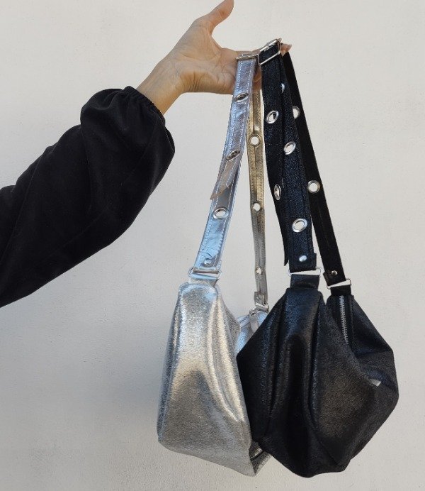 Las tiras son de cuero y tienen tachas súper cancheras, utilizamos cierres YKK níquel. Su interior está totalmente forrado .